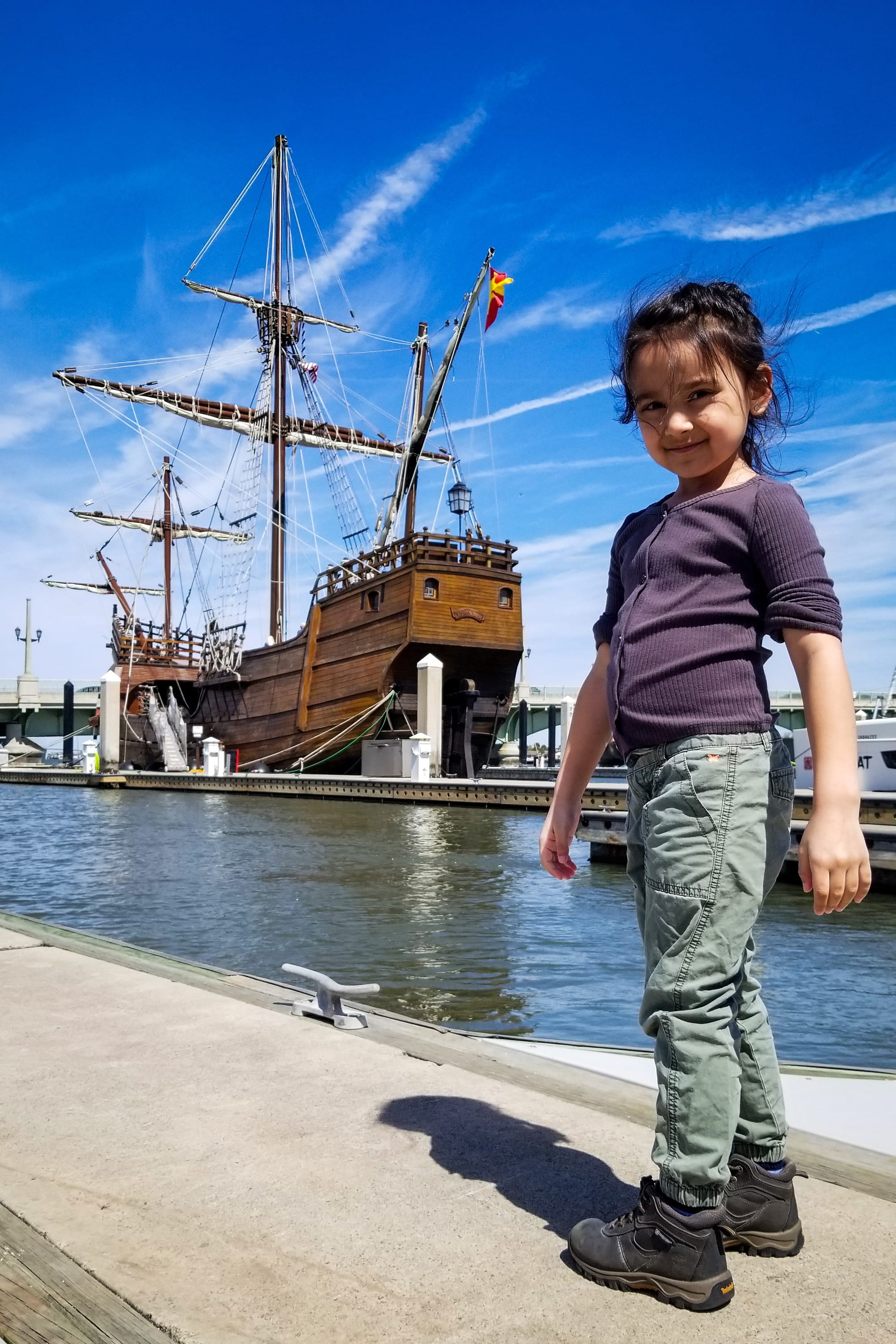 Her first Christmas present was a Fisher Price globe, followed by Lara Croft and National Geographic-themed Barbies, complete with a Jeep for their adventures. I have taught her camping skills, we have taken her to a pirate show in South Carolina, and a pirate museum in Florida. She has visited a full-sized re-creation of Magellan’s ship, the Trinidad. She has followed in the footsteps of Juan Ponce de León. She is likely the only child in the history of Kindergarten who knew the story of Pedro Menéndez de Avilés and the first European settlement in America.